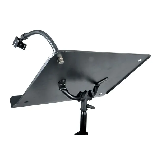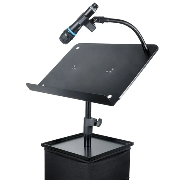 The kit features the height and angle adjustable platform, metal gooseneck microphone holder, mic clip and black scrim as well as the PS1 podium.