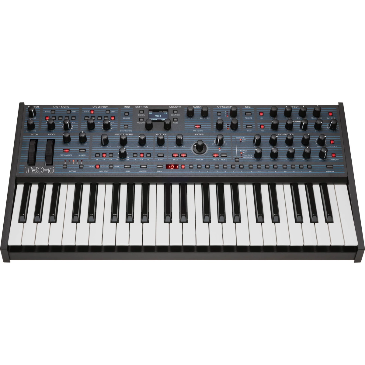 TEO-5 är en synt med DET Oberheim-ljudet kondenserat till det skrivbordsvänliga Sequential Take 5-formatet.