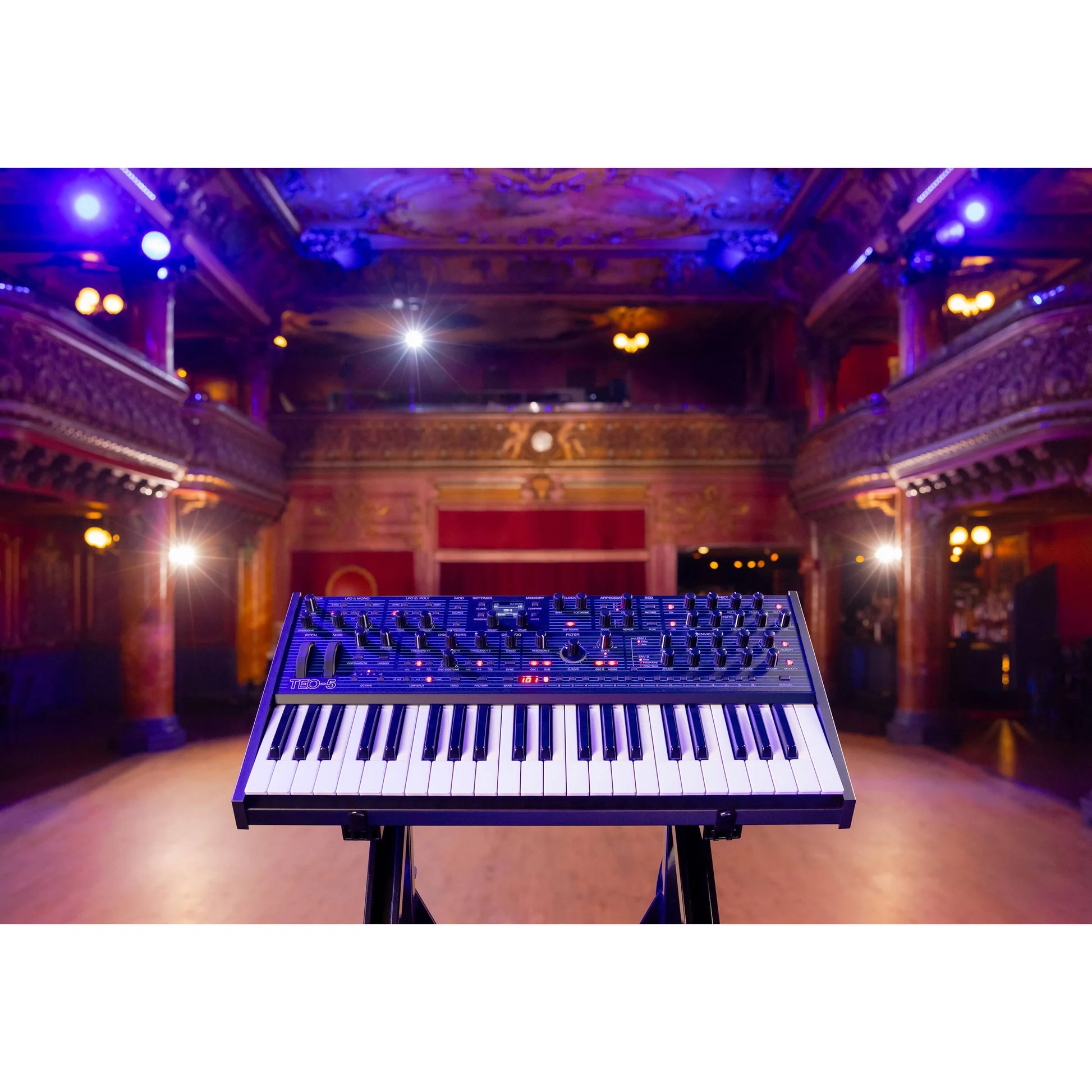 Lyssna allihopa, det finns en ny Oberheim i stan! Är det inte galet? Thomas Elroy Oberheim (TEO) mannen själv gör fortfarande synthar 2024! Det är nästan 50 år sedan debuten av hans första kommersiella synt. För den som drömmer om att äga en Oberheim är TEO-5 den perfekta platsen att börja på. Den har den exakta filterkretsen från den ikoniska 1974 Synthesizer Expander Module (SEM) och den älskade blårandiga finishen som finns på hans senare synthar.