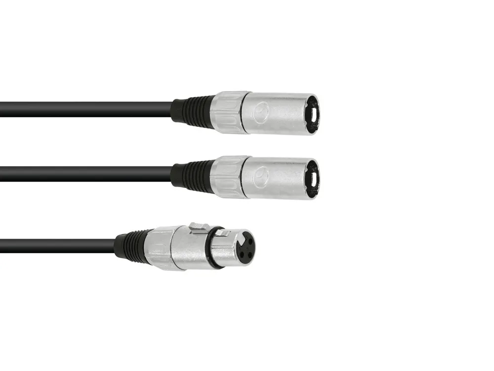 Y-kabel, XLR hona till 2 x XLR hane, 3-stift, svart, 1m.