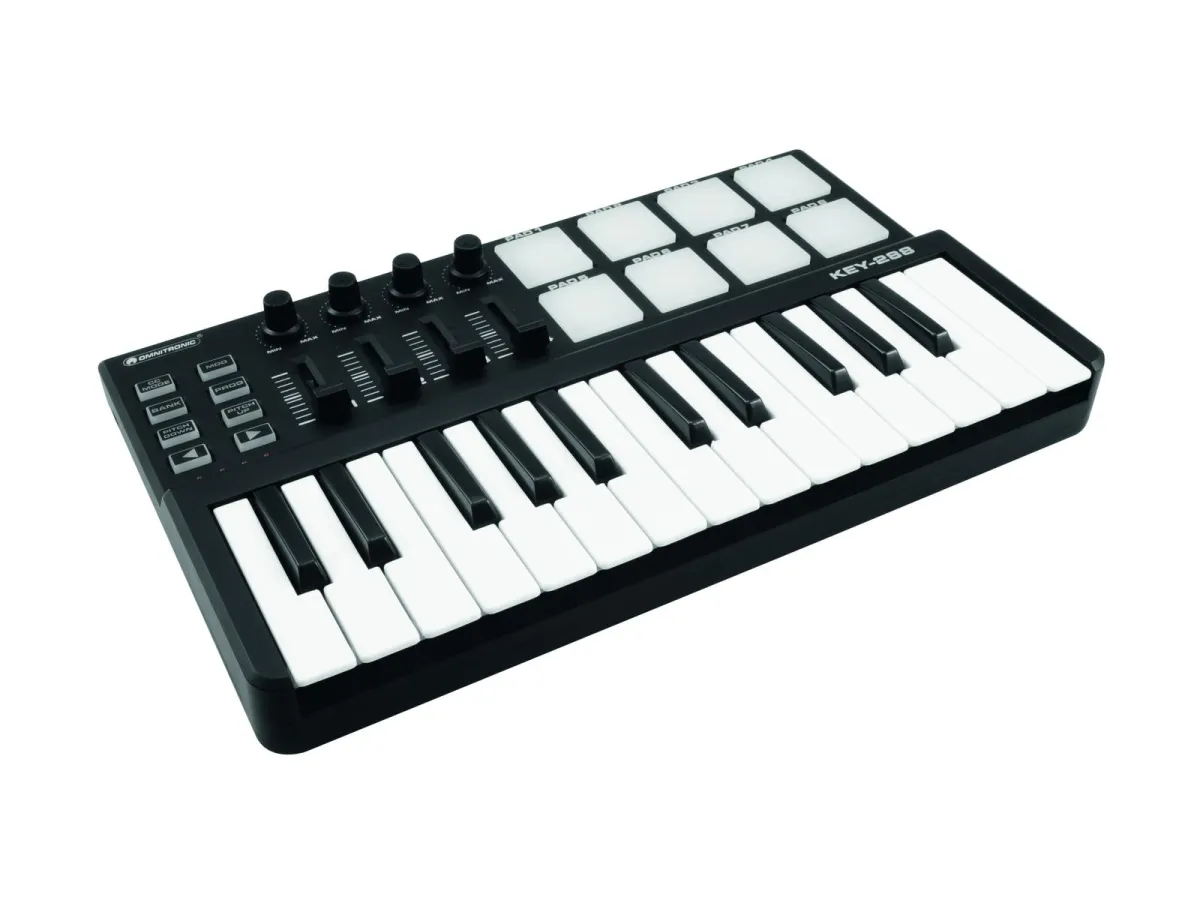 25 anslagskänsliga minikeyboardtangenter, hastighetskurvan justerbar