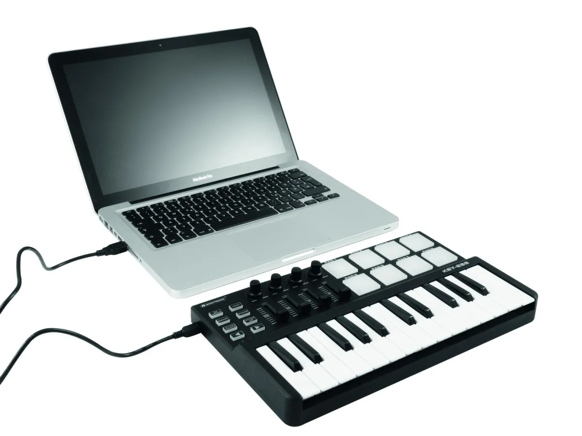 25 velocity-sensitive mini keyboard keys, velocity curve adjustable