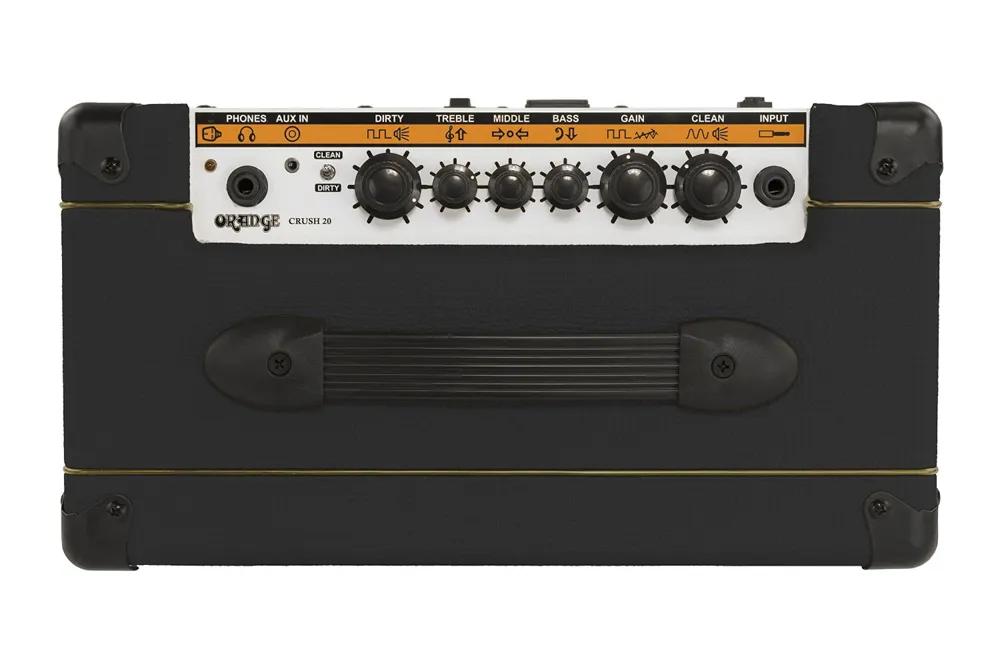 The 20W Orange Crush PiX CR20LDX 1x8 guitar combo amp features 3-band EQ control to better define your sound. The switchable overdrive kicks your guitar into high-gear with plenty of heavy tone. The Orange Crush PiX amp's built-in tuner is easy, helpful, and keeps you in precise tune. The auxiliary input is great for an MP3 player, for playing along to, or just jamming out with the loudspeaker. The Orange amplifier's headphone out is great for silent practicing.