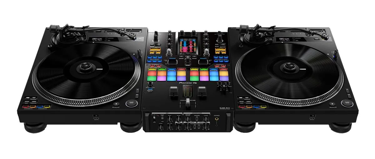 Ett paket från Pioneer DJ med 2 st PLX-CRSS12 hybrid-skivspelare och 1 st DJM-S11 battle mixer. Detta är det bästa du kan få i vinylväg där du har möjlighet att spela vanliga vinylskivor, styra RekordBox med signalskivor eller använda den medföljande magvel-adaptern för att styra RekordBox.