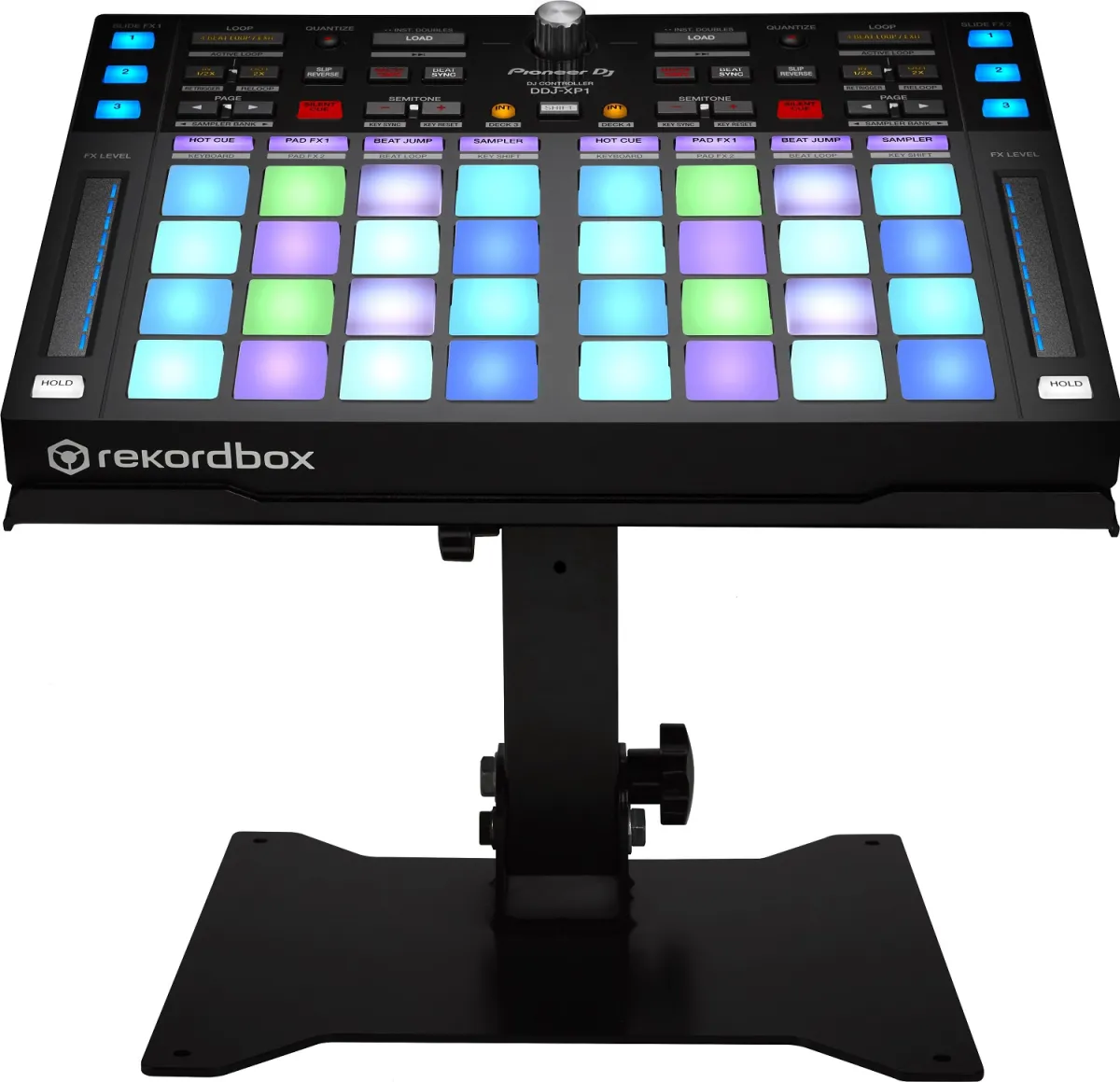 Förbättra din komfort i båset genom att använda ett robust DJ-ställ som är idealiskt för att hålla DDJ-XP1 tilläggskontrollern, RMX-1000 remixstationen eller en bärbar dator på precis rätt höjd under uppträdanden.