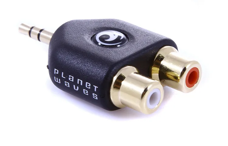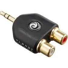 Adapter, 3.5mm hane stereo till 2 x RCA hane, guldpläterad.
