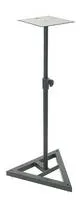 Triangular base nearfield monitor stand. Provided with conical spikes to allow ground feedback insulation. Steel tube structure, provides a height adjustable pin security system from 850 mm to 1170 mm (five different positions). 230 mm x 230 mm upper plate size. Perfect for home recording and studio recording use. Available in matt black.