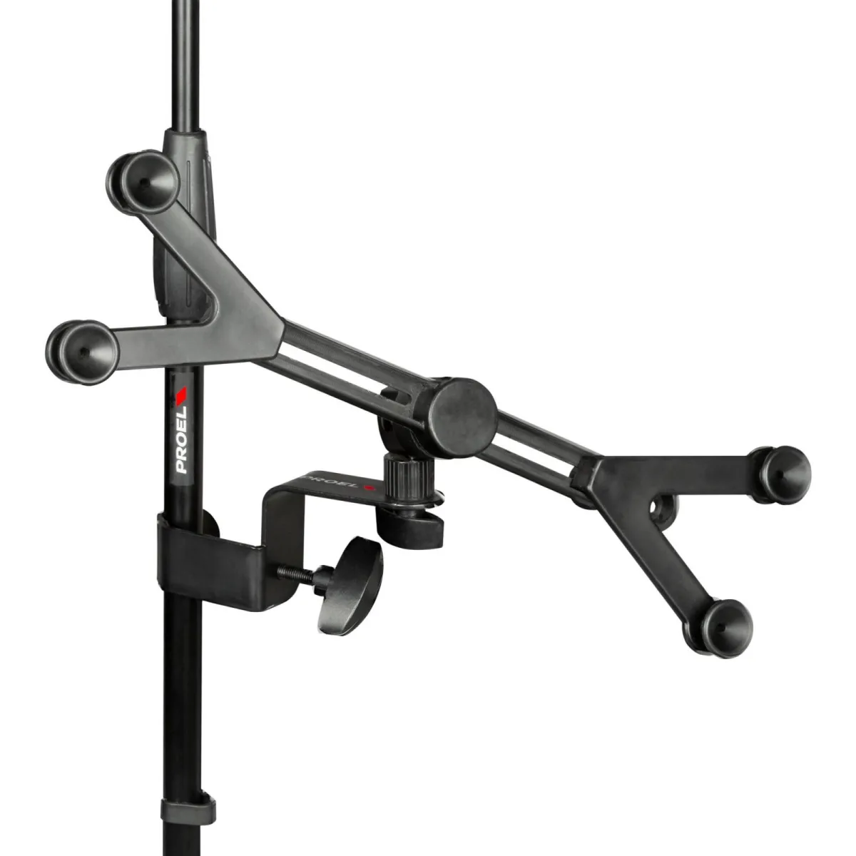 Den praktiska designen gör det enkelt att lasta och bära två stolpar samtidigt, vilket förenklar både upp- och nedmontering för scen, studio eller eventbruk. Den mattsvarta finishen ger ett rent och professionellt utseende.