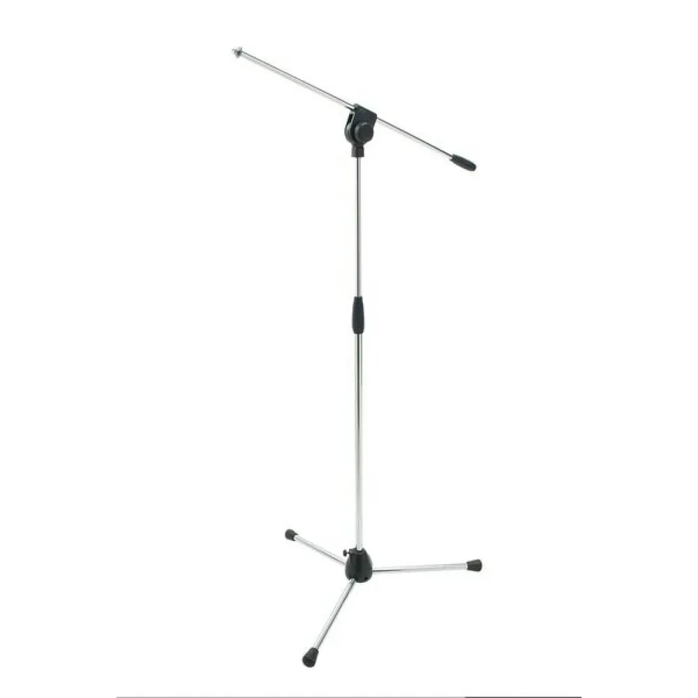 Professional microphone stand with boom, tripod die-cast aluminum base, aluminium die-cast upper joint and nylon clutch-style height adjustment. Chrome plated (PRO100CR) finish.