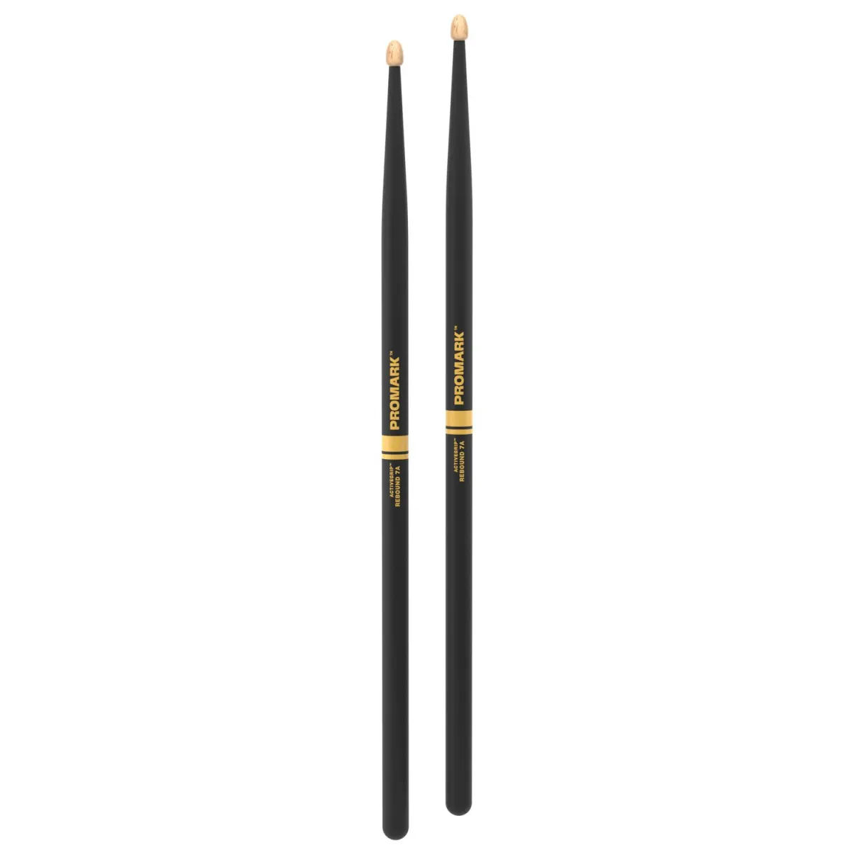 Svarta trumstockar av hickory med Promark ActiveGrip, 16" längd, 0.535" diameter, 3" lång hals, Acorn topp av trä.