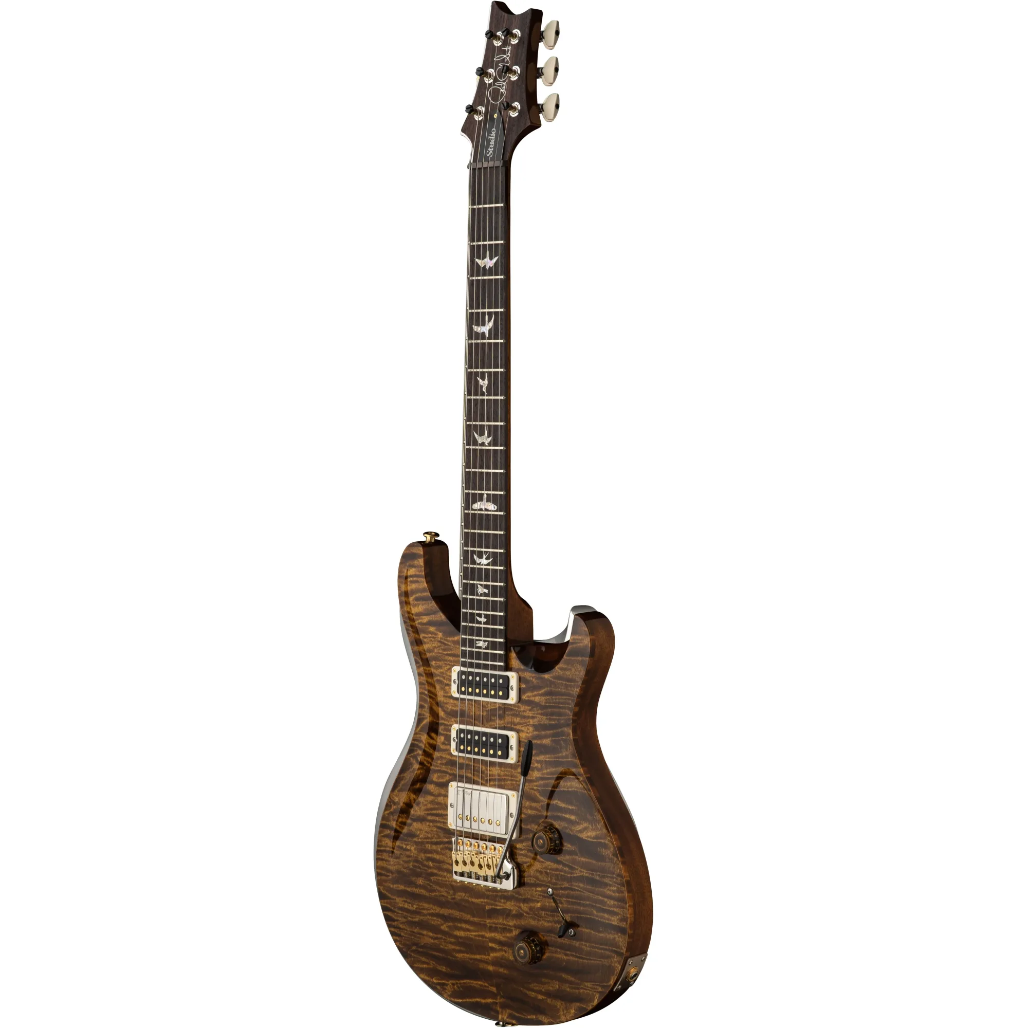 Övriga specifikationer inkluderar en lönntopp, mahognykropp och -hals samt en rosewoodgreppbräda med 22 band och 25” mensur. PRS Studio är utrustad med PRS patenterade Gen III-tremolo och Phase III Locking Tuners med Wing Buttons, båda designade för utmärkt stämningsstabilitet samtidigt som de maximerar överföringen av strängarnas vibrationer genom instrumentet.