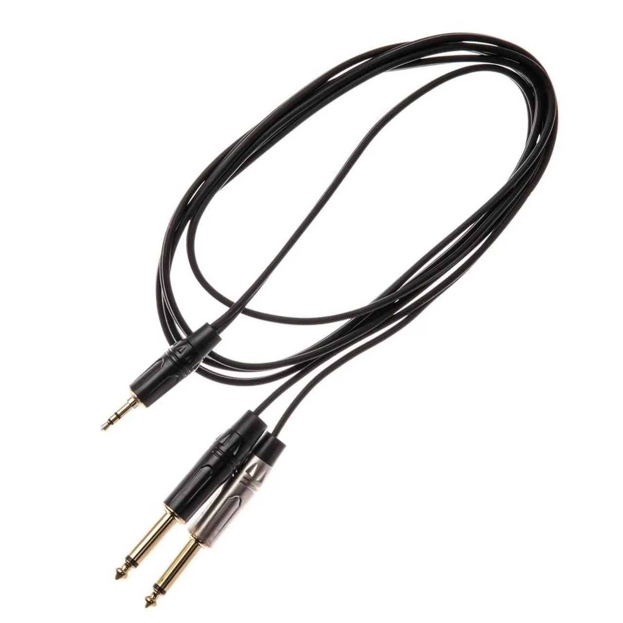 Y-Kabel, Just Serien, 1 x 3.5mm TRS hane stereo till 2 x 6.3mm TS hane mono, svart, guldpläterad, 1m.