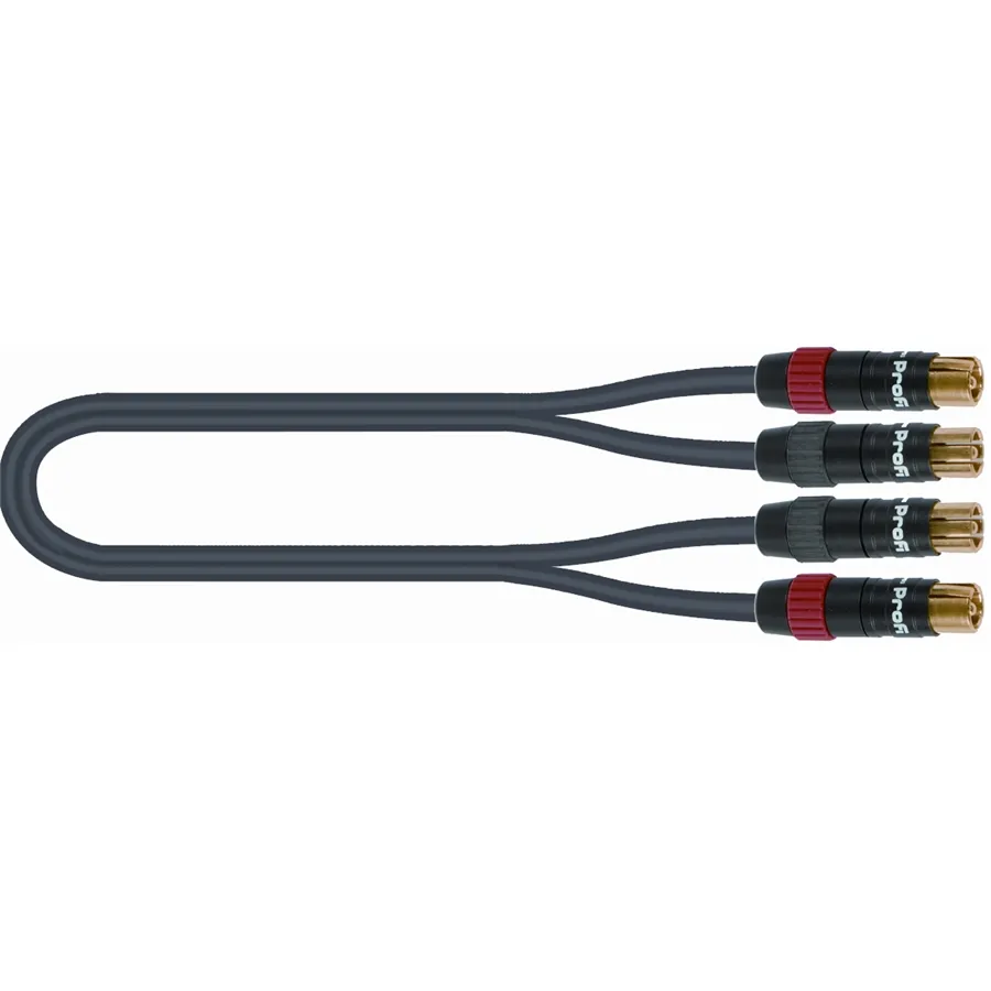 Kabel från 2xRCA till 2xRCA (Hane-Hane) 1.5m. Denna kabel har en speciell guldpläterad NEUTRIK proffs-RCA-kontakt med High End-klass med förutseende jordkontakt, praktisk dragavlastning genom spännchuck, metallhölje och 2 knäckskyddsfjädrar.