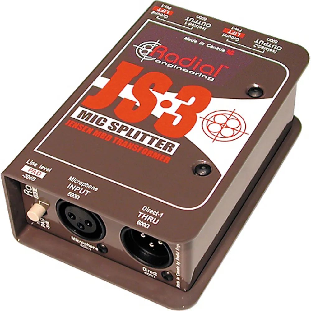 Har elektriskt isolerad XLR I/O, en direkt genomströmning med marklyft och 2 transformatorisolerade utgångar. Har en 30dB pad, levererar 48V DC fantomkraft för mikrofoner, har marklyft och har common mode brusrejection upp till -100dB vid 60Hz. Har ett fristående hölje med 14-gauge, I-beam stålram med bakad emaljfinish och ett innovativt bokstödsskydd. Den använder också en Jensen JT-MBD mikrofonöverbryggande transformator. JT-MBD har en 1:1:1 med dubbla sekundärlindningar för att tillåta dubbla isolerade utgångar. Detta gör att JS-3 kan utrustas med en direktutgång för FOH och 2 isolerade utgångar för monitormix och broadcast-matning.