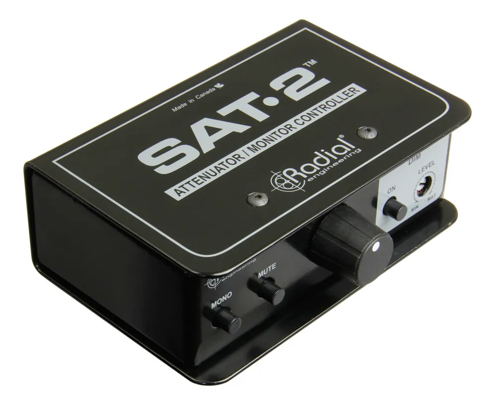 SAT-2™ är en passiv stereoljudenhet som ger dig en genomskinlig nivåkontroll var du än behöver den, antingen vid utgången av ett par högförstärkande mikrofonförstärkare eller mellan ditt inspelningsgränssnitt och ett par strömförsedda högtalare som en kompakt datorskärmskontroller.