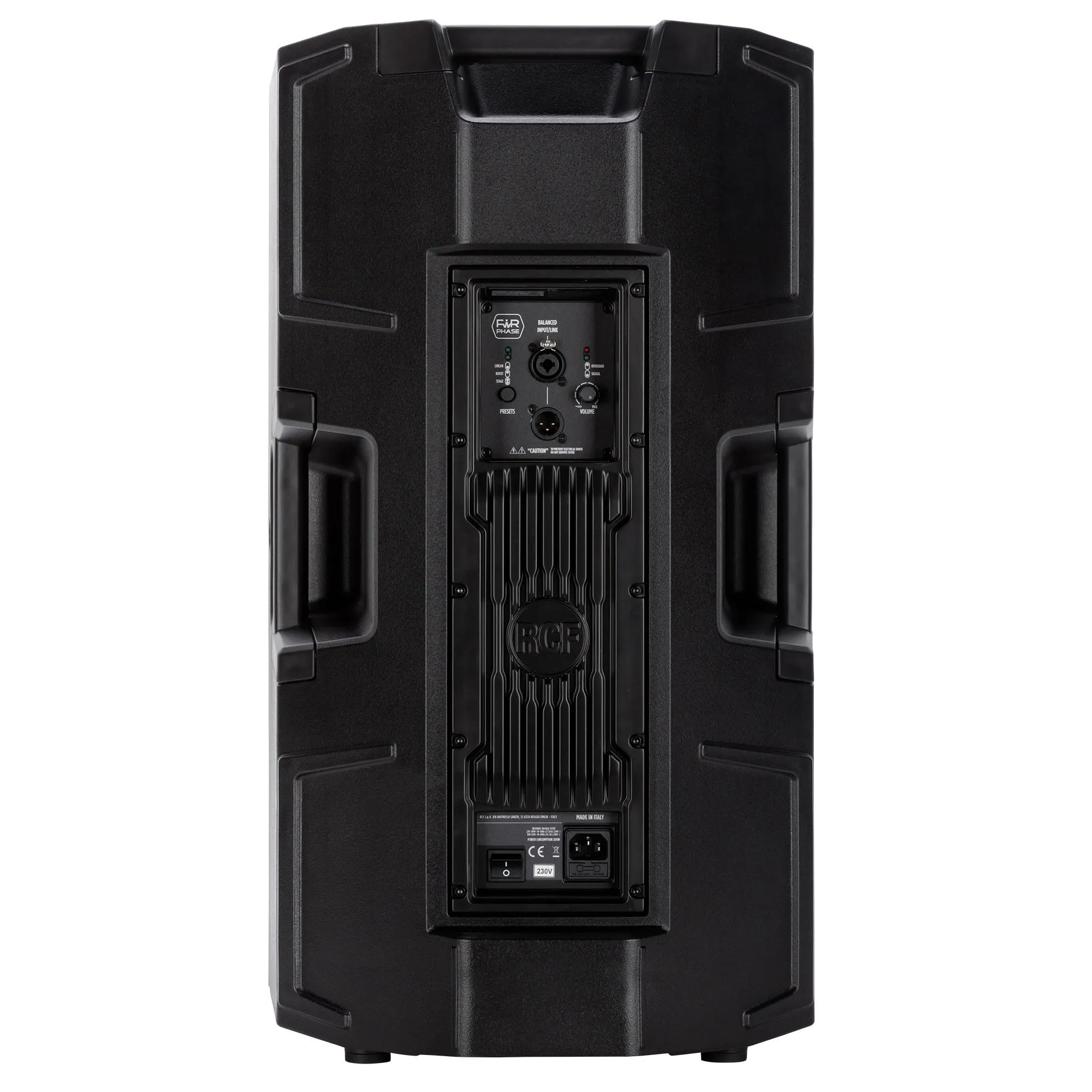 ART 915-A is masterfully engineered to deliver stellar audio performance and versatility for intensive audio applications. The combination of a 1.75" compression driver, 15" woofer, two-channel 2100W amplifier, and a constant directivity True Resistive Waveguide produces coherent 100° x 60° coverage for the listening area with up to 131 dB SPL, distortion-free sound. Merging RCF proprietary FiRPHASE and Bass Motion Control DSP processing, perfectly tuned for each model, the audience will experience absolute clarity and deep, powerful bass response. The sleek cabinet uses a special polypropylene composite material with an M-brace internal reinforcement, making it easy to carry and secure to install on a pole, flown-, wall-, or truss-mounted using the multiple rigging points available.