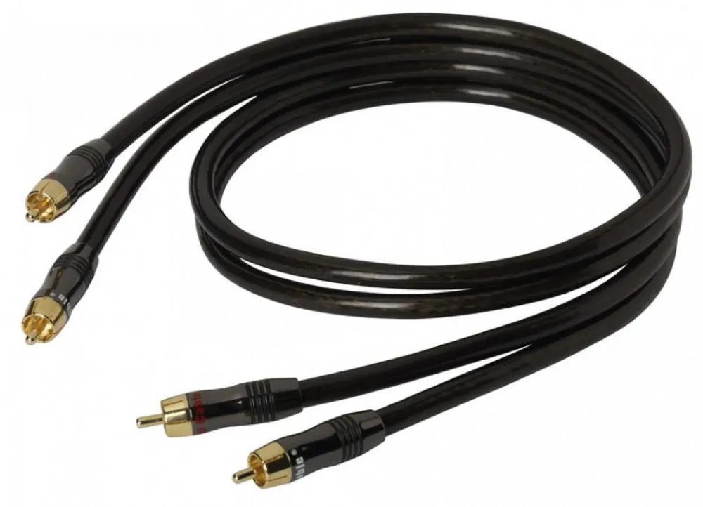 Analog signalkabel med kopparledare. Dubbelskärmad. 2xRCA hane till 2xRCA hane, 1m.