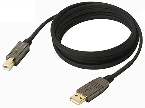 Kabel, USB-A hane till USB-B hane, försilvrade OFC-kopparledare, trippelskärmad, guldpläterad, 2m.