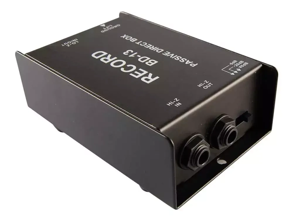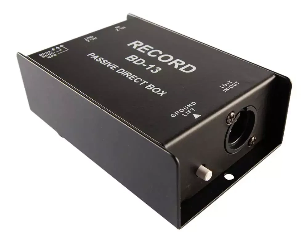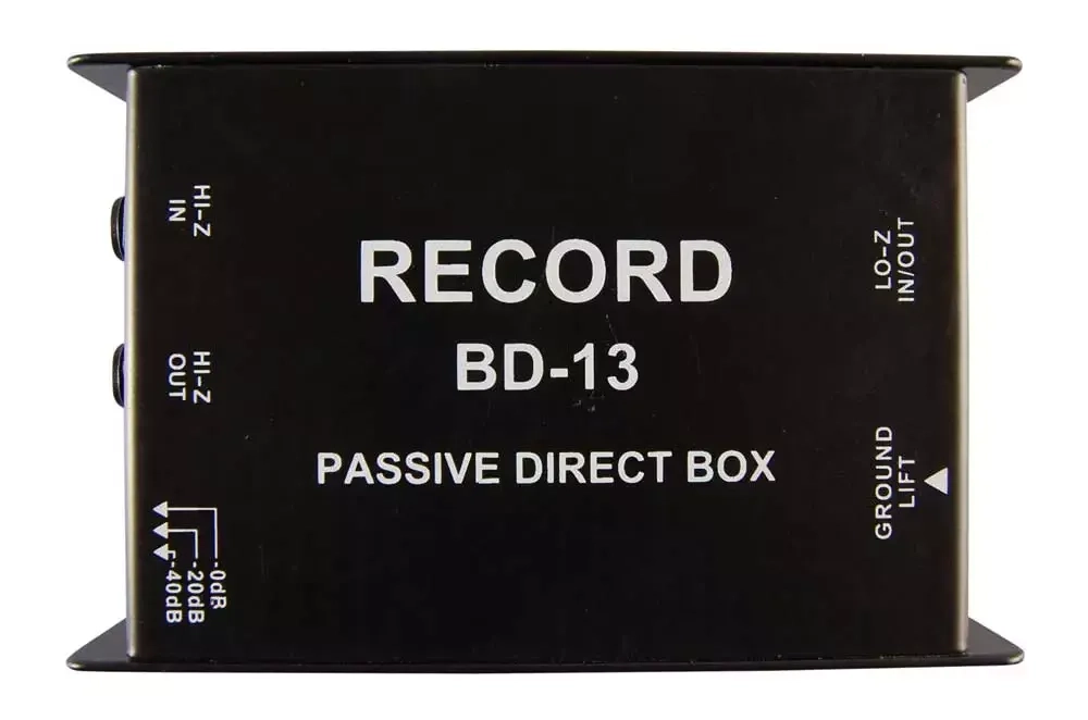 Rekord BD-13 är en passiv direkt box som används för att ändra signalen från din höga impedans på instrument (gitarr, bas, tangentbord, etc.) till en lågspännings signal. Detta gör att du, via din direkt box, till exempel kan ansluta din gitarr till en mixer eller ett ljudkort utan preamp. BD-13 har inbyggt "Ground Lift" för att undvika jord störningar och andra signal störningar. Den är byggd mycket stadigt i en metallkapsling och är därför lämplig för både livejobb och till studion.