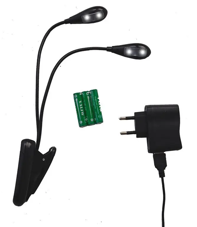 Record LC22 är en liten lampa som kan användas för att få belysning på noterna eller om man behöver ljus till pedalboardet eller annan utrustning. Den kan även användas som natt- eller läslampa. Record har två LED-lampor med rörlig hals och monteras lätt på ett notställ eller annan yta med clip-on system. Med LC22 följer 3 (inte laddbara) batterier och en strömadapter.