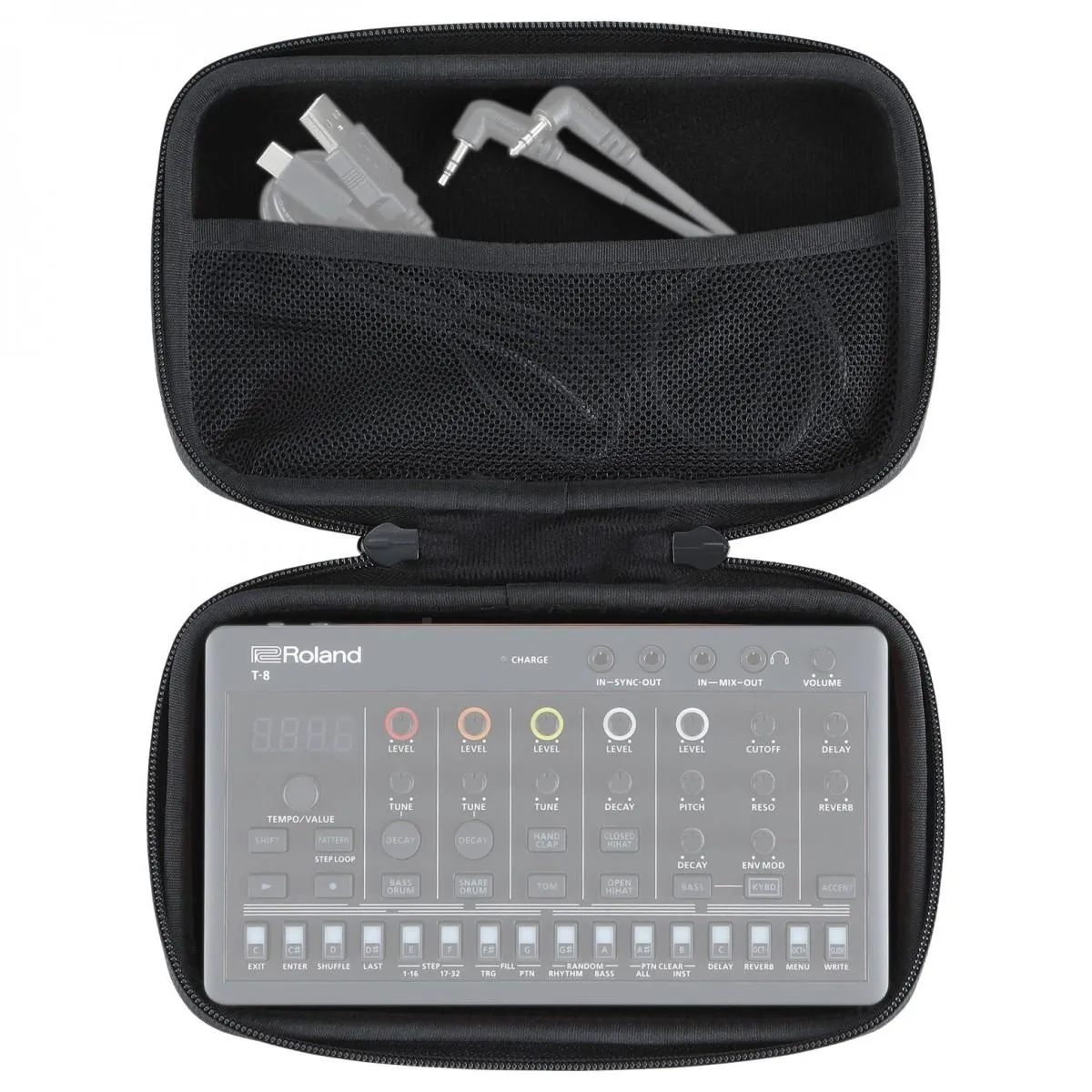 Oavsett om du reser till din nästa studiosession eller på väg hem, hjälper CB-RAC till att hålla alla interna komponenter fria från skador. Insidan har en nätficka som kan användas för att förvara din USB-laddningskabel. Utsidan har Roland-logotypen med dubbla kraftiga dragkedjor för att hålla din utrustning säker när du är på språng.