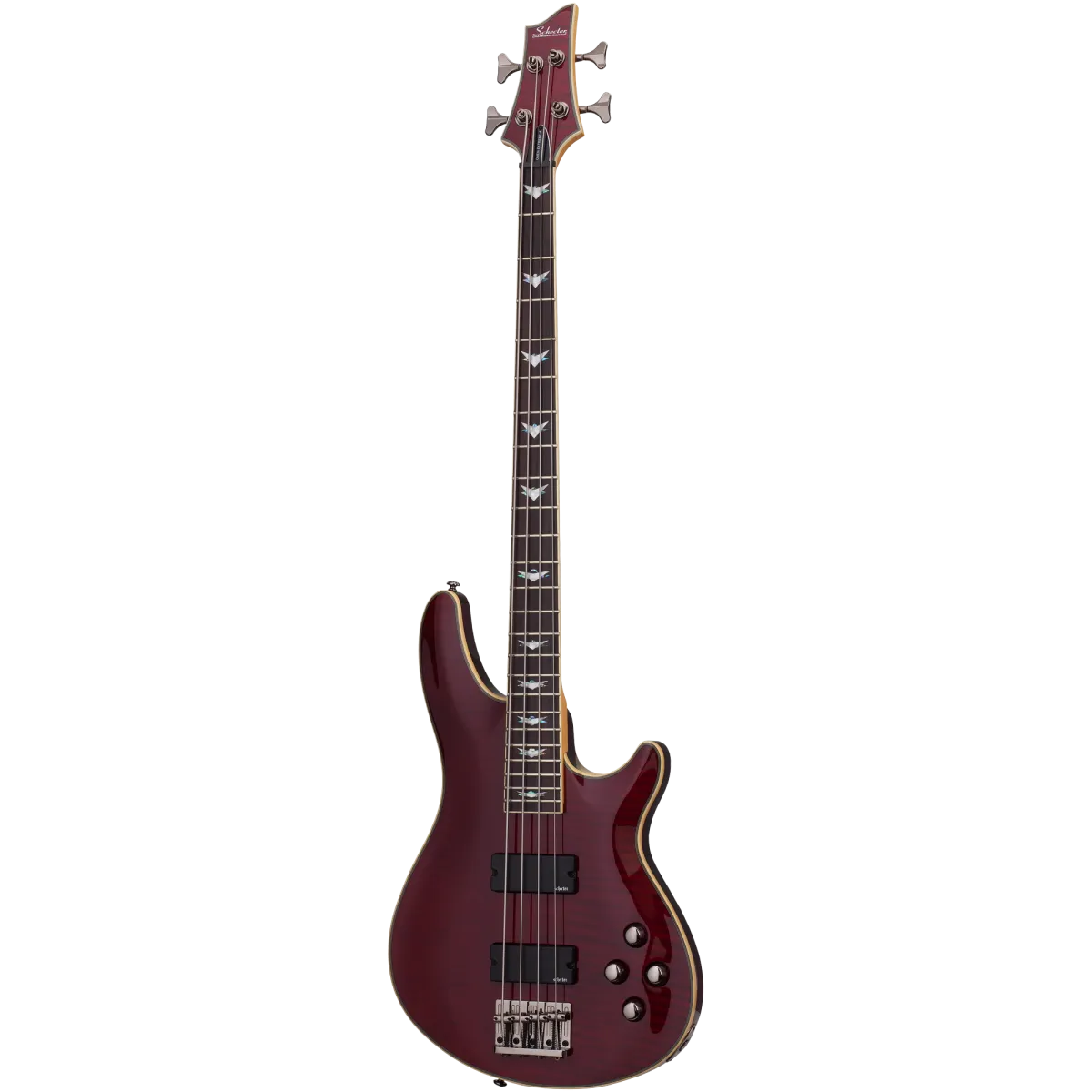 Med en böjd lock av flammig lönn, inläggningar av pärlemor/abalone och en krämfärgad, flerskiktad bindning är basarna i Omen Extreme-serien riktiga blickfång. Basarna låter lika bra som de ser ut tack vare kroppen i mahogny och Schecter Diamond Bass-pickupen. Greppbrädan i rosenträ och den tunna lönnhalsen gör det enkelt att spela.