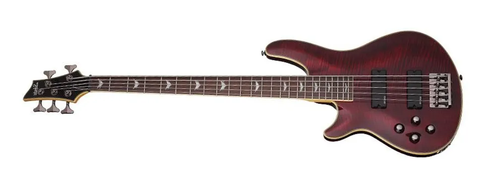 The Omen Extreme-5 Bass Guitar from Schecter Guitar Research is an updated take on the Omen line. This 5-string bass has jaw-dropping looks with its mahogany and flame maple body. Active 2-band EQ, Diamond pickups, 35" scale, and premium hardware make it a performer. Through and through, the Omen Extreme-5 Bass delivers the sound and features that serious bassists demand.