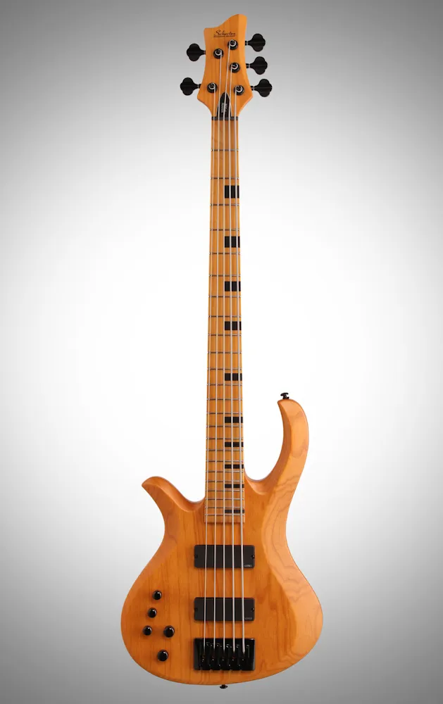 Denna eleganta och prisvärda elbas har ett 18V aktivt pickupsystem med två EMG-designade enkelspolar. Elektroniken består av en master-volym och en master-blandningsratt som blandar den relativa volymen för mitt- och bridge-pickuperna. Det finns också en trebands aktiv roterande EQ med klipp- och boostkontroller för bas/mellan/diskant. Satinfinishen låter dock träsket aska visa sig och linjerna och hårdvaran kompletterar den inneboende stilen hos denna mångsidiga basgitarr. 5-strängad.