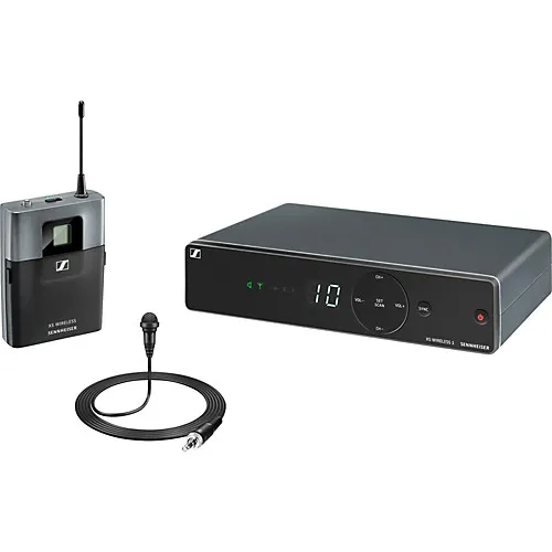 LAVALIER SET for presenters, featuring a lightweight omnidirectional lapel mic, compact bodypack transmitter and stationary receiver with built-in antennas