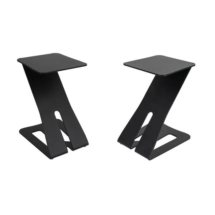 The Showgear Table Monitor Z-Stand is a set of two black modern monitor stands suitable for small monitor speakers. The stands have a 15x18 cm speaker platform and can hold a weight of up to 15 kg. Besides, it has a height of 25.3 cm, which can contribute to achieving optimal sound quality. Four rubber pads at the bottom and on the tray will minimize contact noise and support a firm grip.