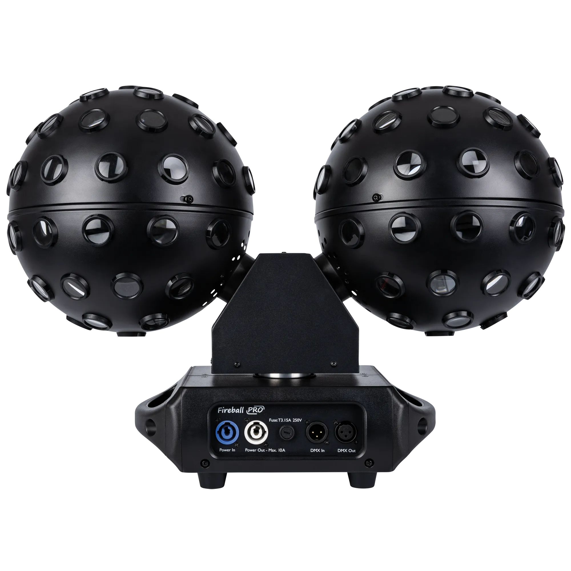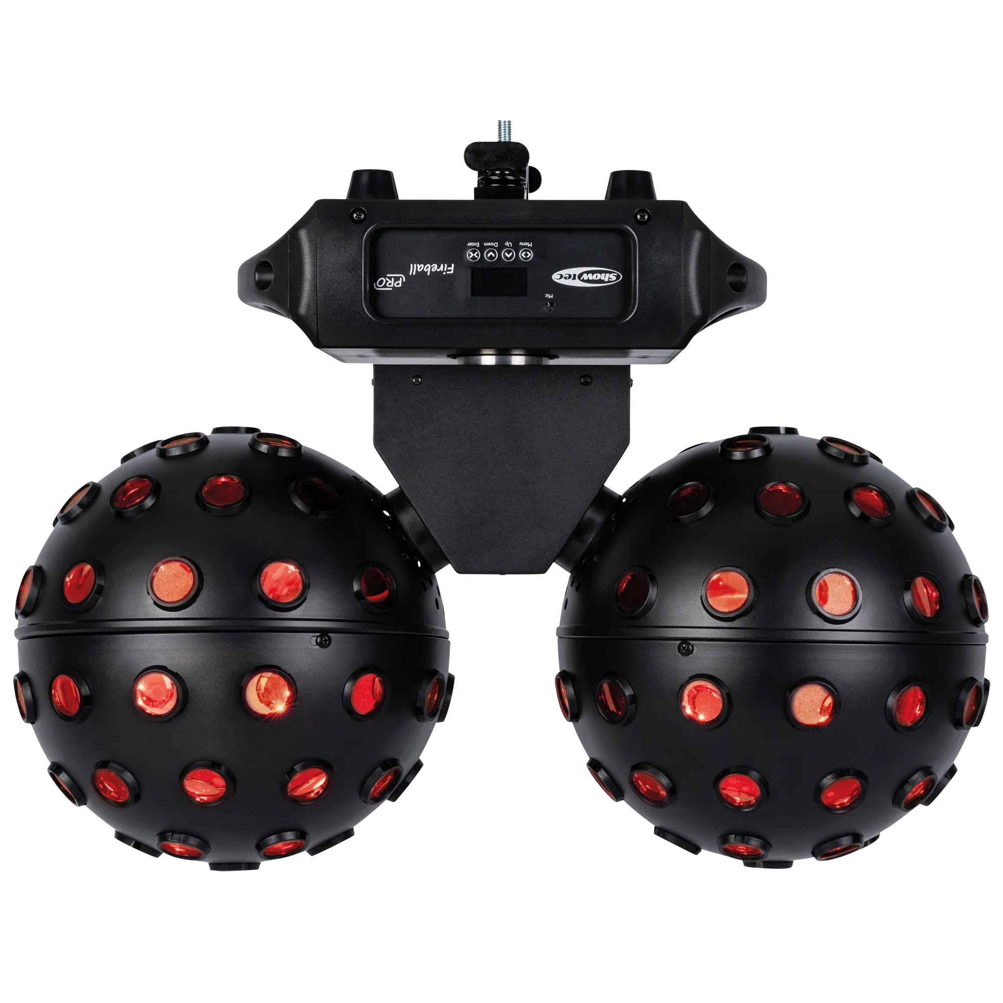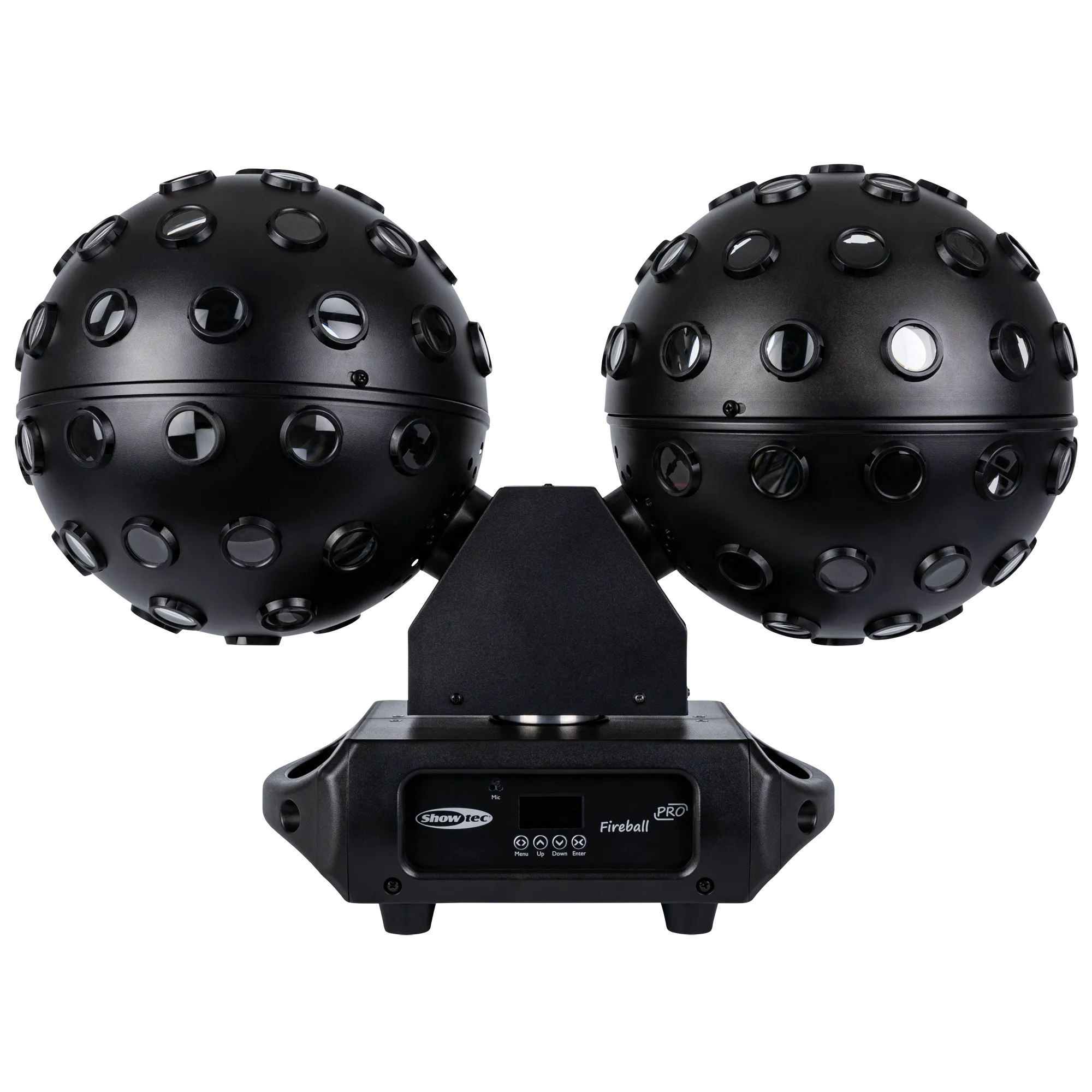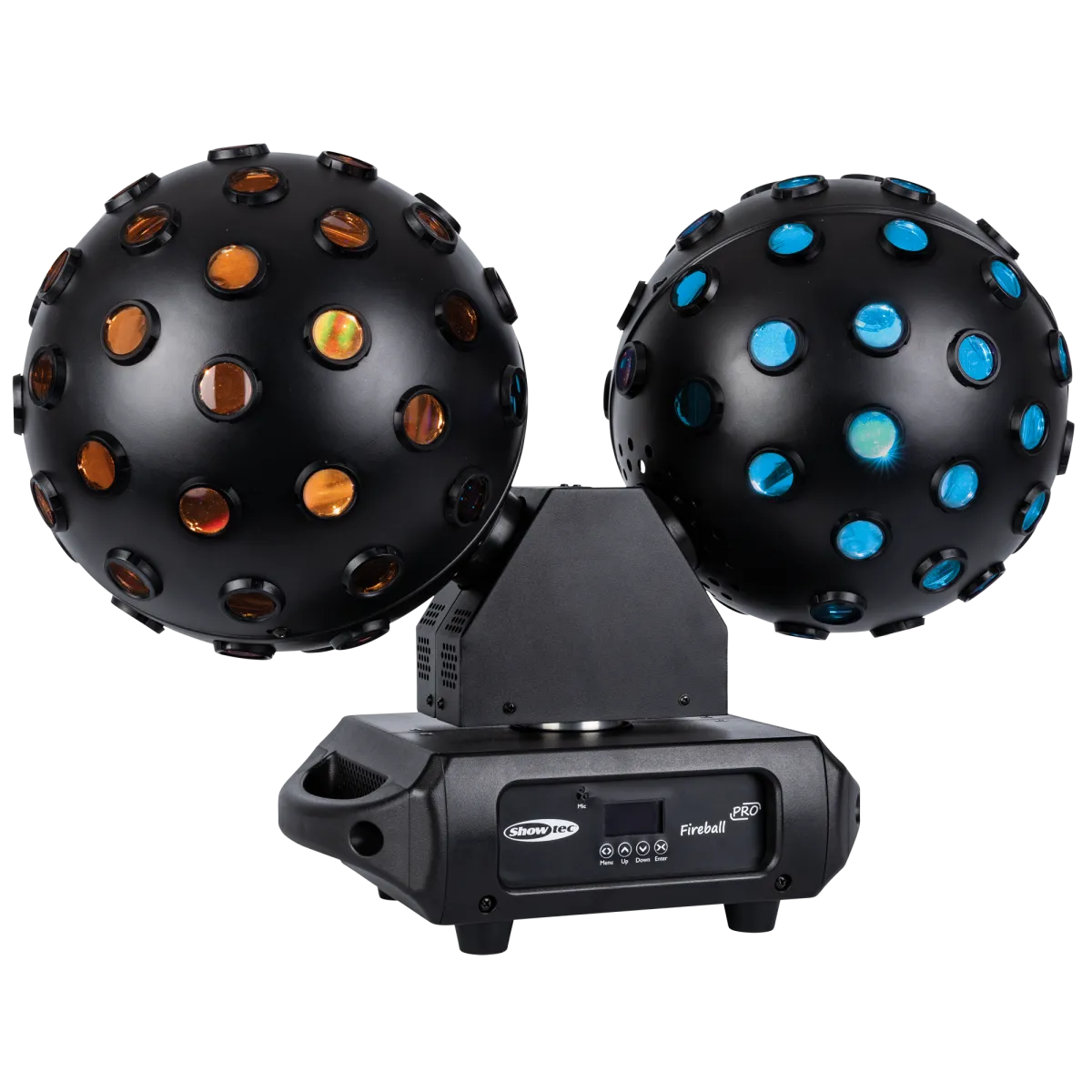Showtec Fireball PRO är en kraftfull RGBW-dual-mirror-effekt som skapar imponerande 2-graders ljusstrålar med 360° täckning. Den består av två oberoende roterande bollar, vardera med fyra 25 W RGBW-LEDs och två separata kontrollbara sektioner, vilket ger totalt 200 W ljus. Bollarna och själva bärramen kan rotera kontinuerligt i båda riktningarna, samt rotera båda åt samma håll eller var för sig.