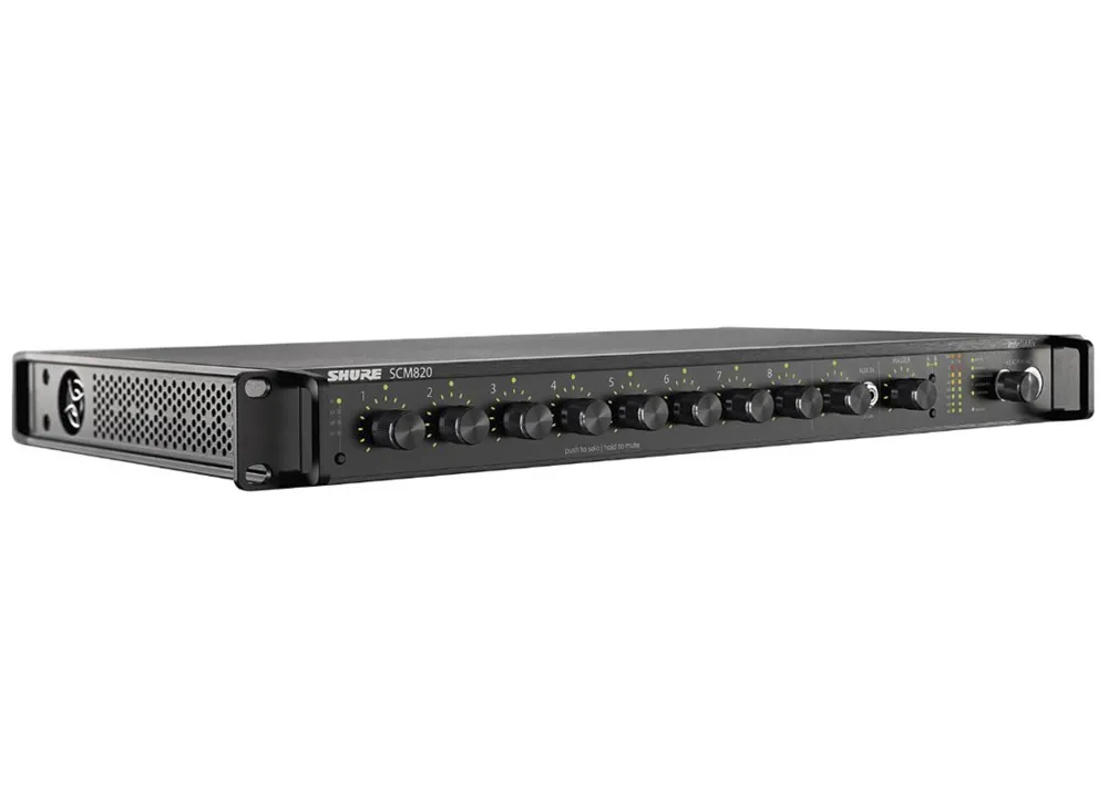 Designed for use in speech applications including sound reinforcement, broadcasting, and recording, the SCM820 uses IntelliMix® technology to dramatically improve audio quality when many channels of microphones need to operate simultaneously.