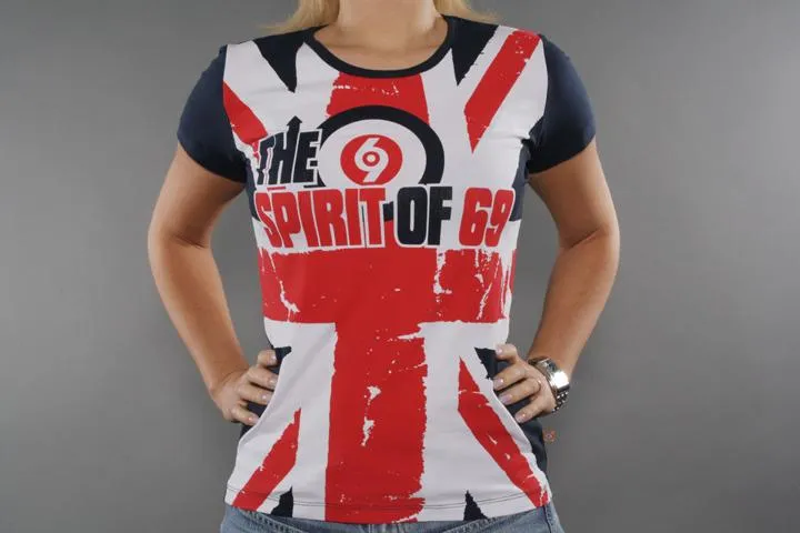 Marinblå t-shirt med allover print framtill. 95% bomull, 5% elastan. Dam, marinblå, small.