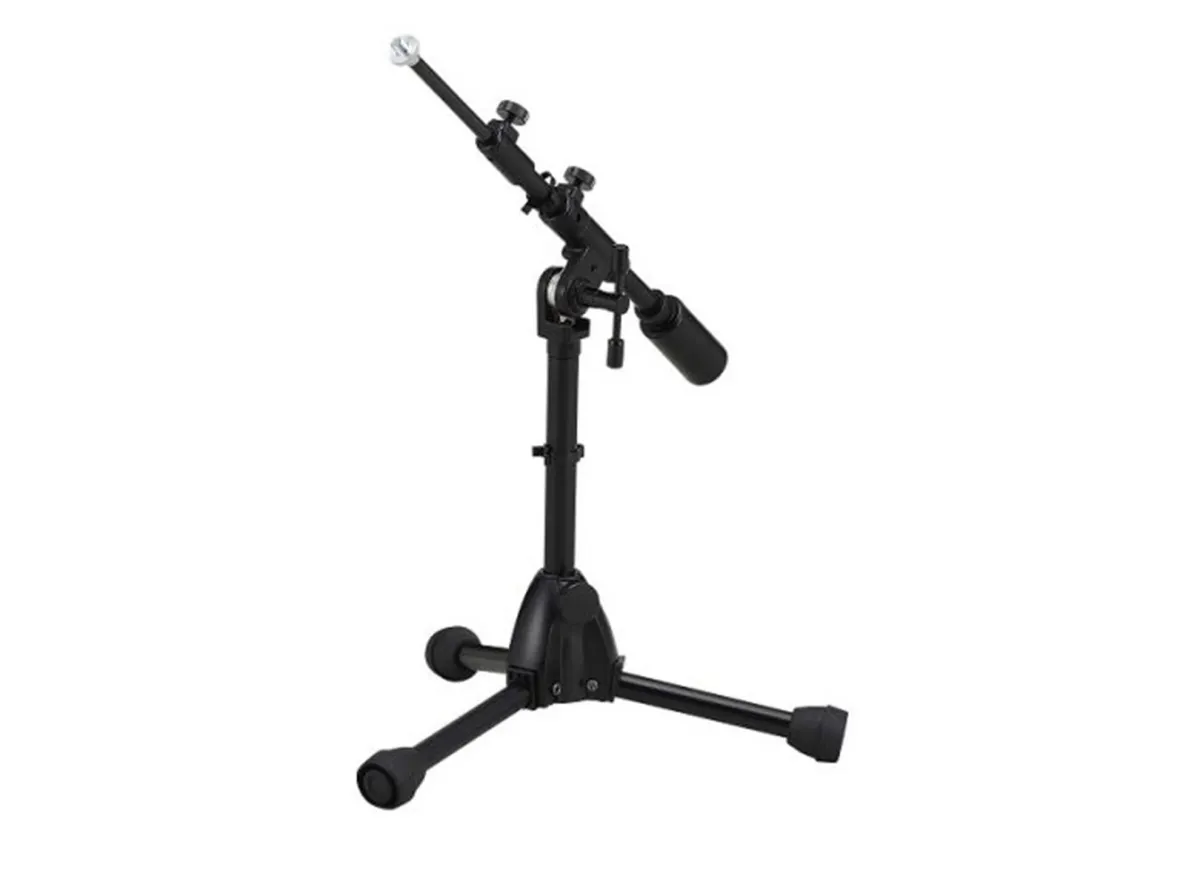 Mikrofonstativ med teleskopbom, Extra låg, Svart.