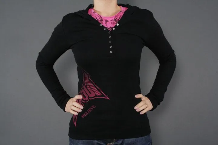 Svart långärmad Vertigo Henley med luva. Tapout logo på sidan. Svart, medium.