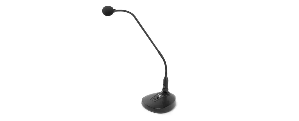 The TM-95GN is a gooseneck microphone for personal broadcasting, conferencing or other speech applications. It has a stable metal foot and can be easily aimed at the speaker thanks to the flexible elements in the upper and lower part of the gooseneck. A switch allows the mic to be turned off when not in use. The mic comes with a windscreen to avoid pop noise, and an XLR cable is also included.