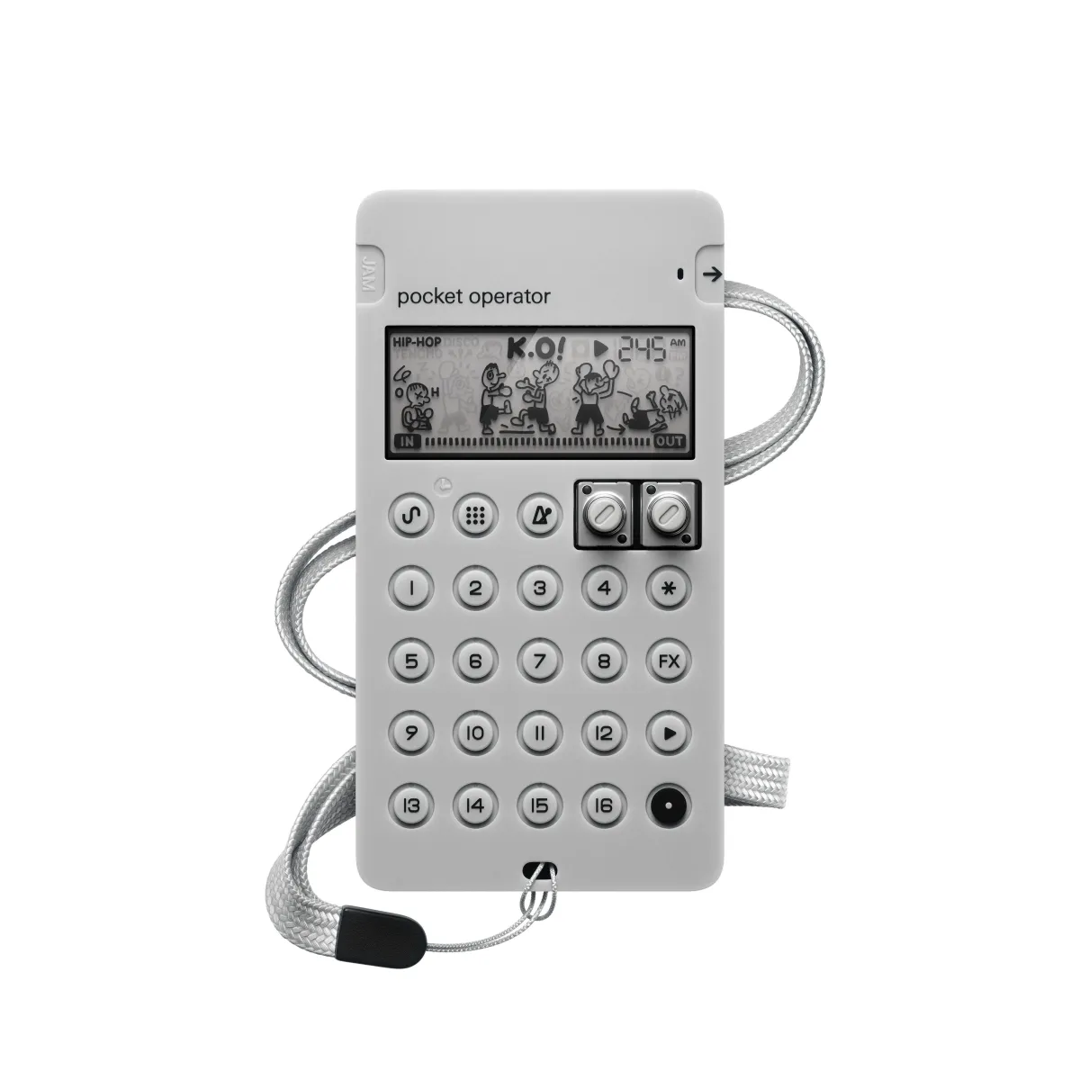 Skydda din Pocket Operator med ett grått silikonfodral. Det har inbyggt batteriskydd och halkskydd på baksidan. Knapparnas belysning syns fortfarande när fodralet är på. Ta bort hängaren och metallstativet för perfekt passform.
