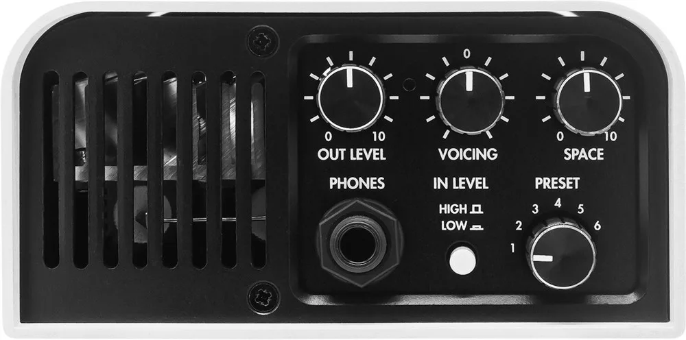 Kraftfull belastningsbox (8 Ω, 100 watt RMS) utrustad med en inbyggd dämpare med tre nivåer: Hem (-38 dB), Klubb (-20 dB) och Stadion (0 dB).