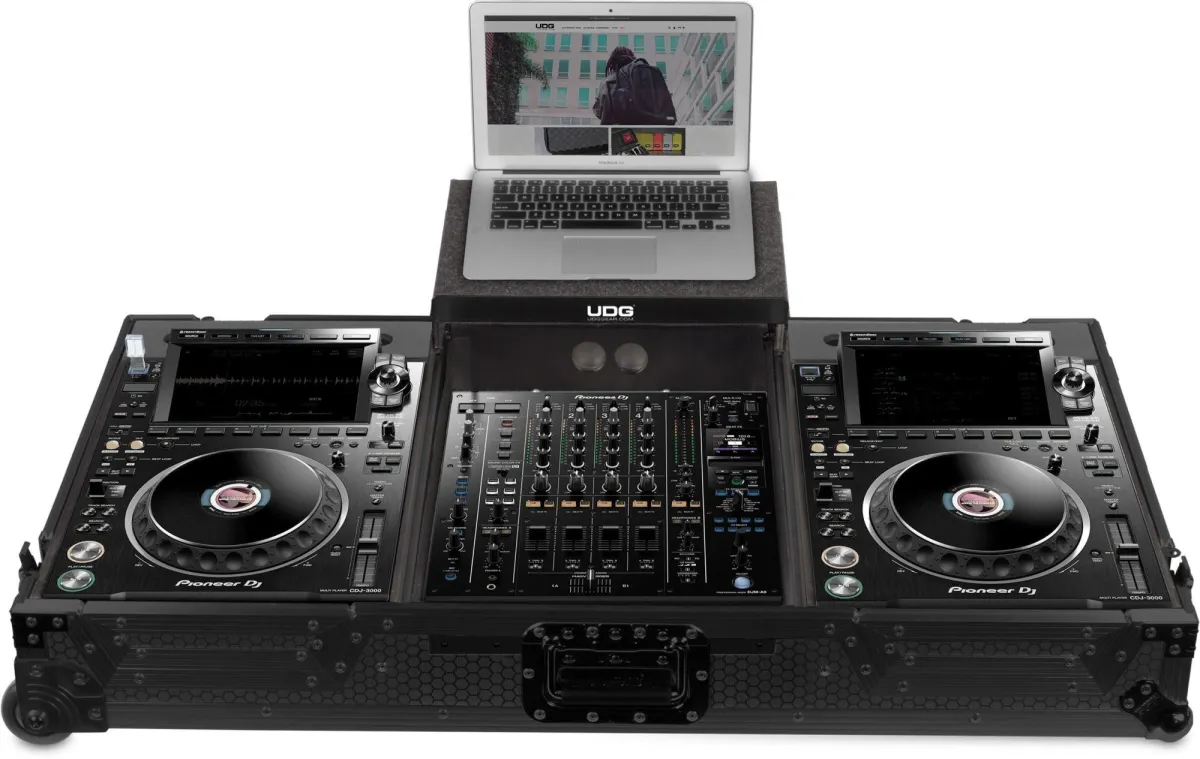 UDG Ultimate Flight Case Set Pioneer CDJ-3000/A9 Black Plus (Laptop Shelf + Wheels) not only transport your complete set up easily & securely, but also facilitates devices to be setup within minutes. With these premium features incorporated, the UDG Ultimate Flight cases provide premium professional quality in a very stylish modern black colored combination.