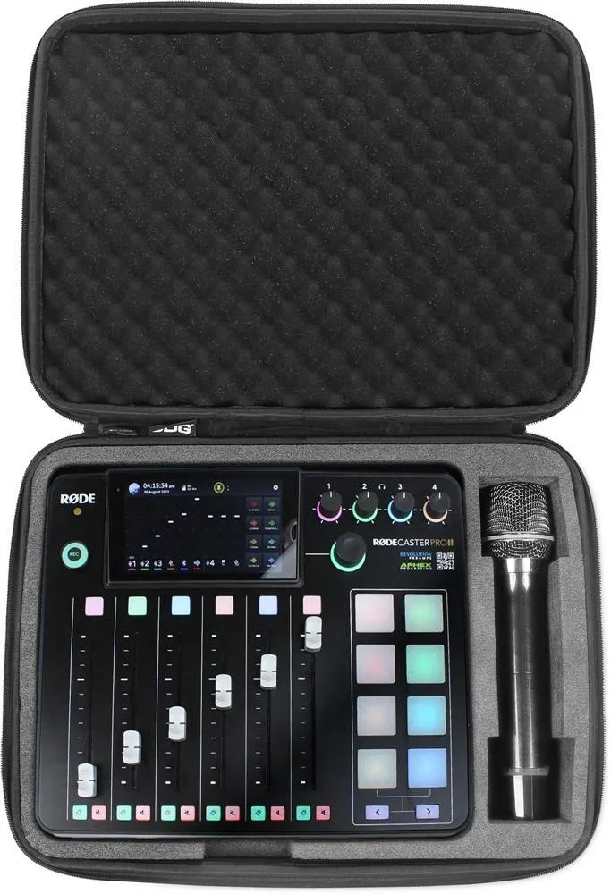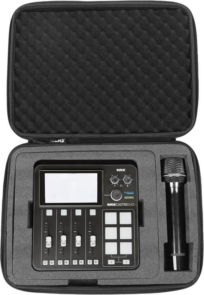 Är du en digital kreatör som letar efter en professionell, hållbar väsklösning för din Rodecaster Pro II / Duo, mikrofon och nätadapter? Då behöver du inte leta längre, UDG har utvecklat ett superlätt EVA-hårdfodral som är utformat för livet på vägen. Tillverkad av slitstarkt, lätt kompressionsgjutet EVA-material med en laminerad utsida av slitstarkt tyg, ger detta fodral skydd mot droppar, repor och vätskor. Det här fodralet är skickligt utformat och gjutet för att passa Rodecaster Pro II / Duo, mikrofon och nätadapter och är perfekt för den digitala kreatören som reser och behöver skydda sin utrustning.