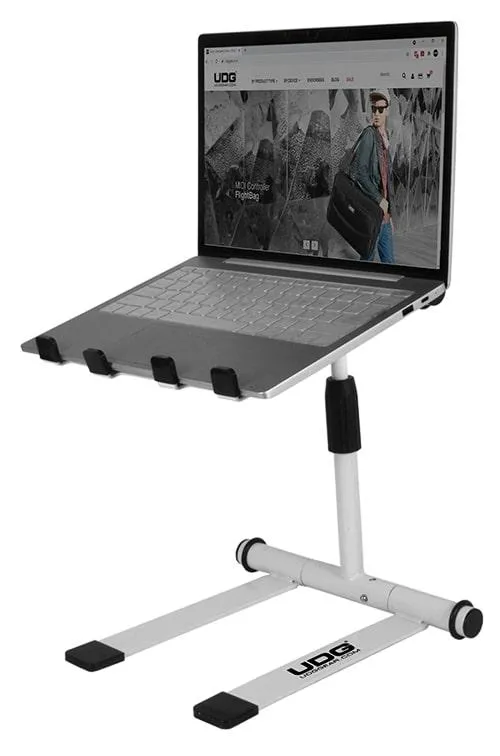 UDG Ultimate Height Adjustable Laptop Stand har en höjdjusterbar teleskopisk laptophylla som roterar 360° väl lämpad för mobila DJ:s och elektroniska musiker. Stativet kan rymma bärbara datorer upp till 19 tum samt iPads, surfplattor eller en mängd olika utrustningar som kontroller, mixers eller produktionsutrustning.