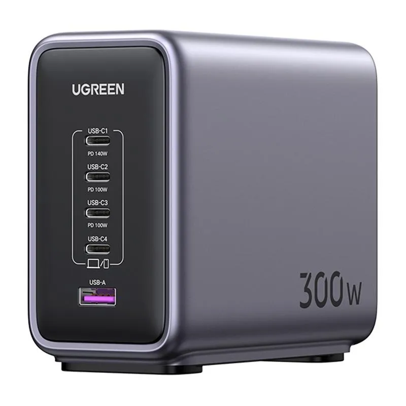 UGREEN CD333 Nexode-laddare, USB + 4x USB-C, GaN, 300W + 240W USB-C-kabel (svart)