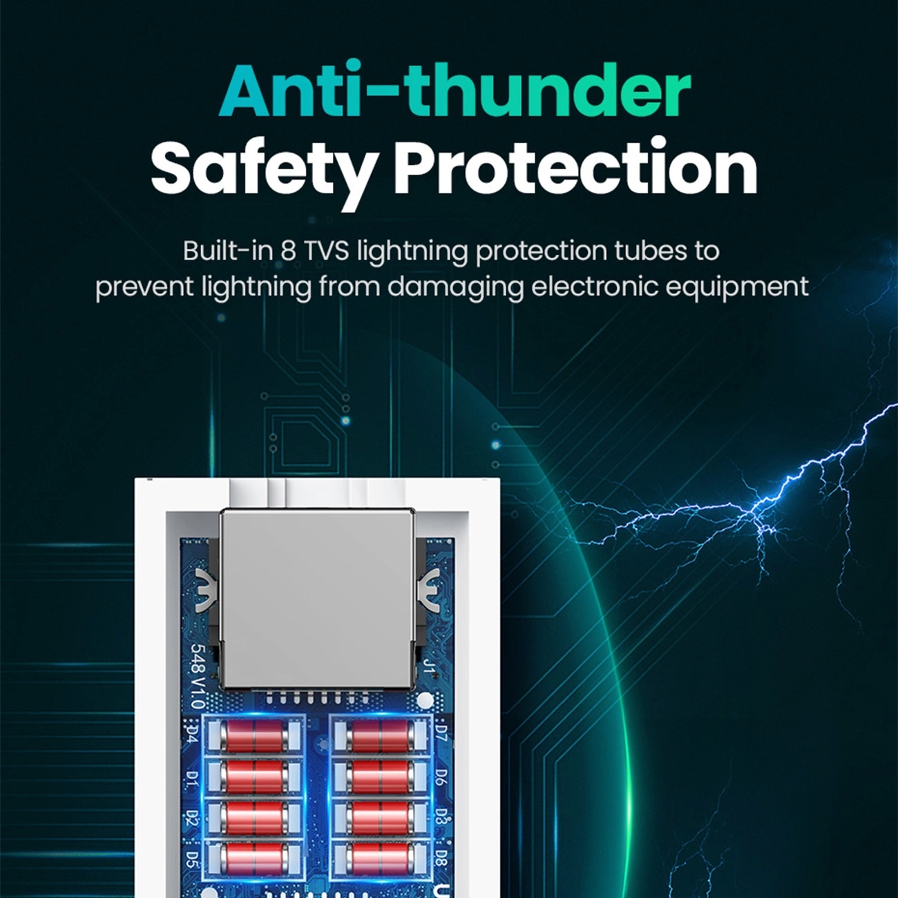 Du behöver inte oroa dig för stormar - Ugreen NW116-kontakten säkerställer en stabil anslutning även under de mest extrema väderförhållanden. Modernt överspänningsskydd gör Ugreen NW116-kontakten hållbar och perfekt skyddar kablarna mot blixturladdningar.