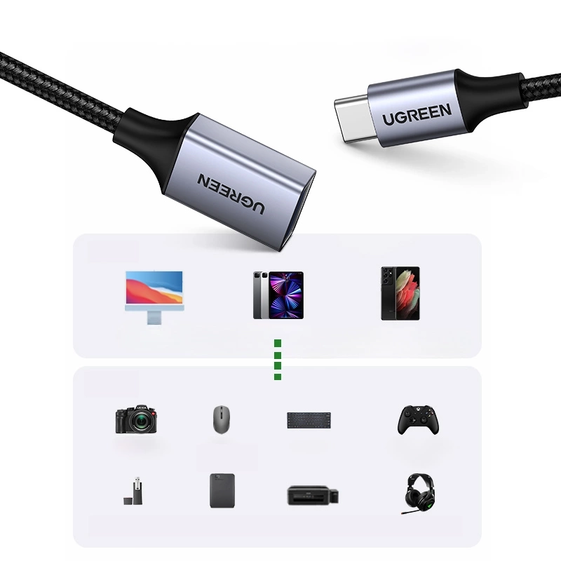 USB C (male) - USB (female) 3.0 OTG cable 0.15m Ugreen US378 - black