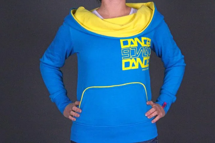 Lång hoodie med trendig krage från Urban Classics i deras Urban Dance serie. Dam, Blu/gul, small.