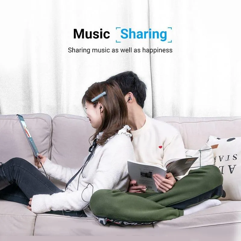 Dela ljud mellan två 3,5 mm stereohörlurar eller högtalare