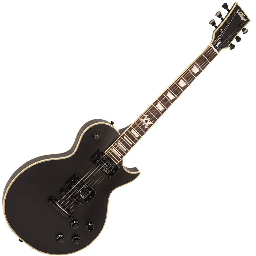 Den single cutaway Vintage® V100VMX elektriska gitarren med metalltema är en del av Limited Edition VMX-serien, en hyllningsserie tillägnad den mycket framgångsrika Vintage Metal Axxe™-serien, som i sig har inspirerat generationer av metalspelare över hela världen.