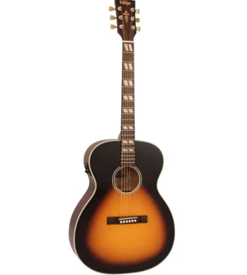 Vintage VE160VSB Historic Series Orchestra har en Vintage Sunburst-finish och är en charmig elektroakustisk gitarr för blivande singer-songwriters och ambitiösa musiker. Den bekväma kroppen på denna grantoppade gitarr har skulpterats ut med mahogny, vilket resulterar i en beprövad kombination av tonwoods för ett mångsidigt ljud som enkelt kan förstärkas tack vare den inbyggda förförstärkaren, som levereras komplett med en integrerad tuner, 3-bands EQ och en brusreducerande fasomkopplare. Lägg ihop allt, och Vintage VE160VSB blir ett gediget val för alla blivande gitarrist.
