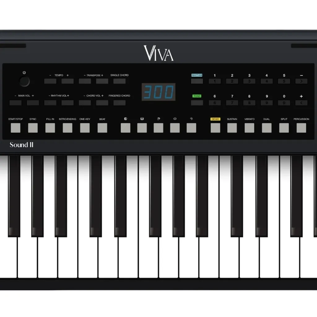 Viva Sound II är ett arrangörskeyboard med 61 tangenter i full storlek, ett stereohögtalarsystem, undervisningssystem och ett brett urval av ljud och rytmer med ackompanjemang. Förutom att få ström via den medföljande strömförsörjningen kan Viva Sound II också drivas med batterier (6 x AA-batterier / ej inkluderade).