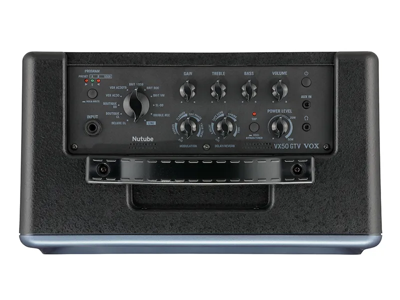 Förstärkaren på 50w har en 8" högtalare & inbyggda effekter, sounds & förstärkarsimulatorer.
